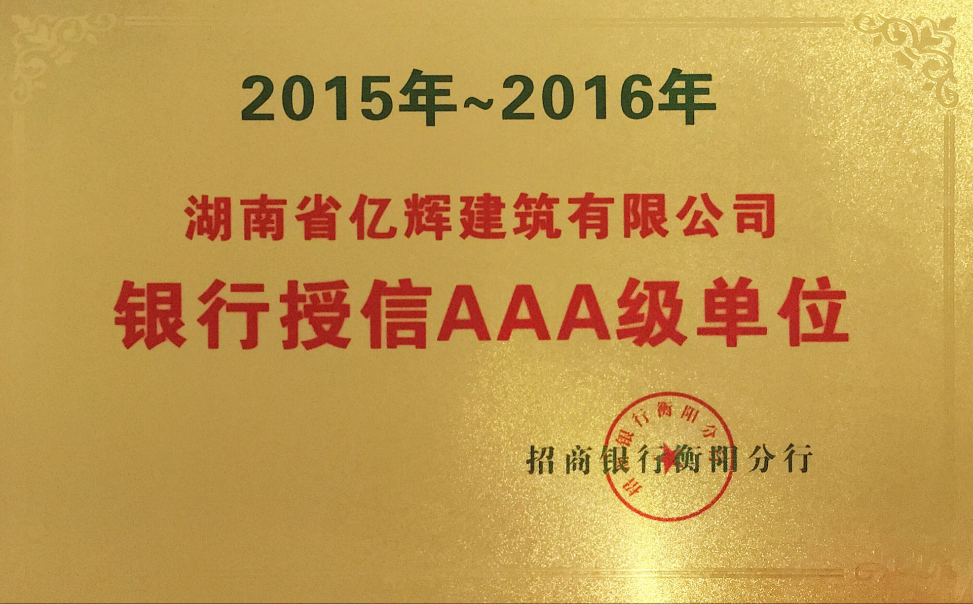銀行授信AAA級單位證書
