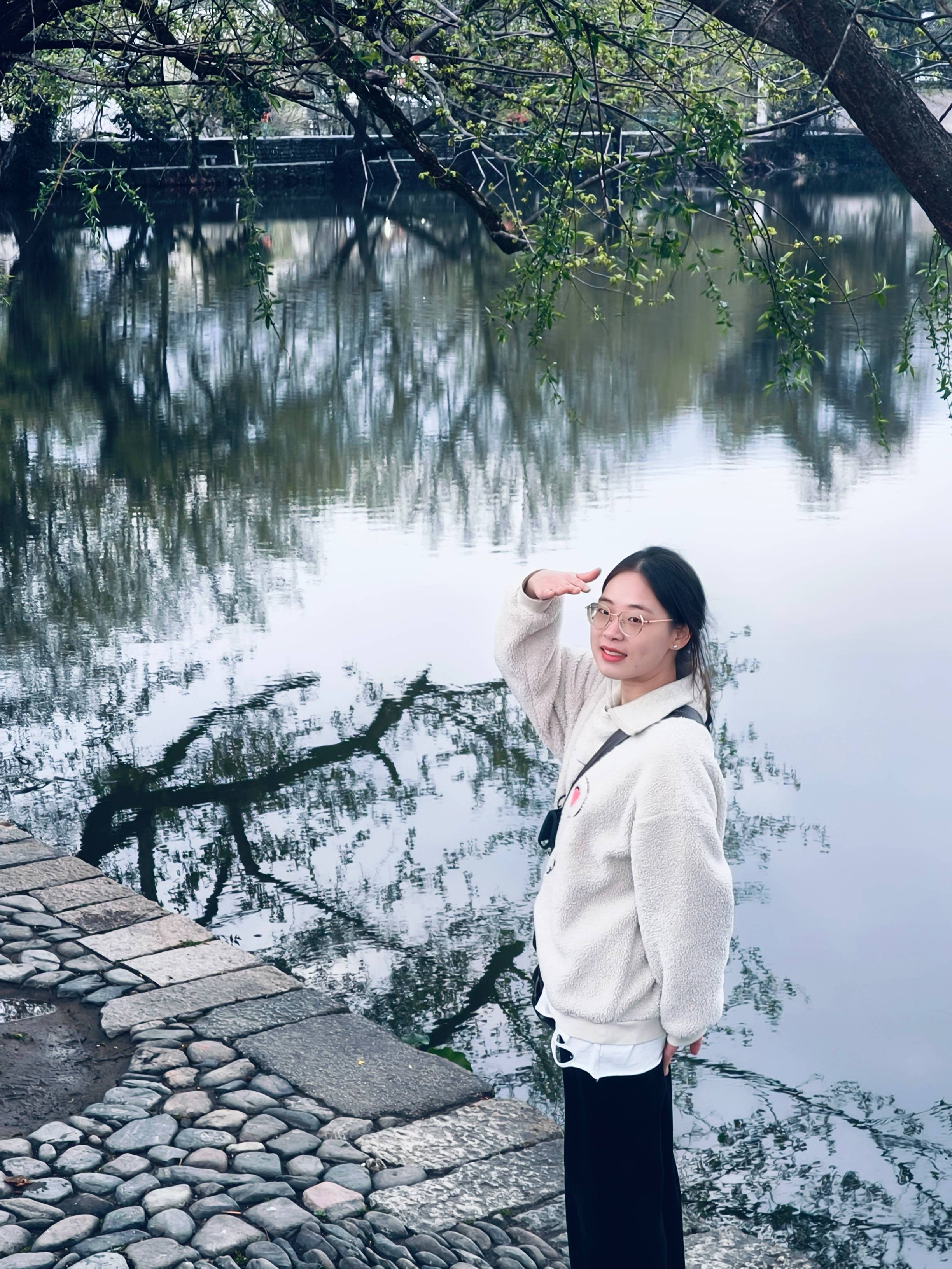 隨后,我們走進(jìn)了有著“中國畫里的鄉(xiāng)村”美譽(yù)的宏村。這座始建于南宋紹熙年間的古村落,歷經(jīng)800多年的風(fēng)雨洗禮,依舊保留著古樸的風(fēng)貌,并成功入選世界文化遺產(chǎn)名錄。宏村依據(jù)仿生學(xué)建造,獨(dú)特的“牛型村落”布局巧奪天工,“山為牛頭樹為角,橋?yàn)樗奶阄轂樯?rdquo;,每一處都彰顯著古人的智慧。大家穿梭在承志堂、敬修堂之間,欣賞著精美的木雕、磚雕和石雕,感受著“民間故宮”的非凡魅力;駐足在月沼和南湖畔,平靜的湖面倒映著白墻黑瓦的徽派建筑,宛如一幅水墨畫卷在眼前徐徐展開;走過楓楊、白果兩棵古風(fēng)水樹,仿佛能聽見歲月的低語,訴說著宏村的往昔故事。在這里,時(shí)間仿佛凝固,大家沉醉于這古樸寧靜的氛圍,用相機(jī)記錄下每一個(gè)美好的瞬間。