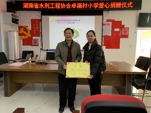 大家聽(tīng)取了省水利廳駐卓福村扶貧工作隊(duì)駐村幫扶情況匯報(bào)。并在村委會(huì)召開(kāi)2019年度扶貧助學(xué)捐贈(zèng)儀式,湖南省億輝建筑有限公司向卓福村小學(xué)捐贈(zèng)5萬(wàn)元善款,協(xié)會(huì)、施管局和企業(yè)代表為卓福村小學(xué)一至三年級(jí)學(xué)生送去書(shū)包、文具等學(xué)習(xí)用品。